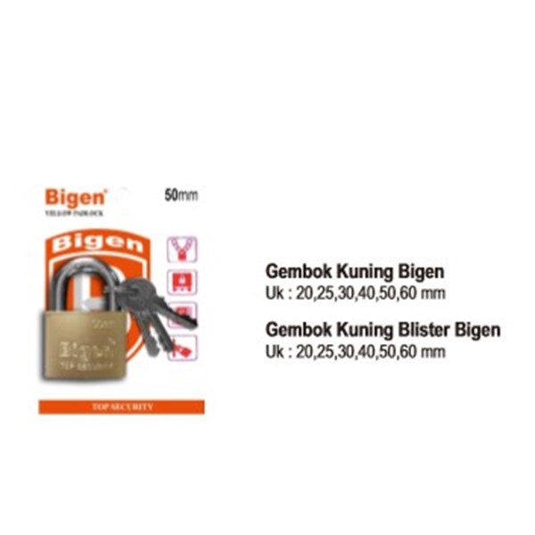 Kami menjual Gembok Kuning Bigen dalam beberapa jenis ukuran 20, 25, 30, 40, 50, 60 mm