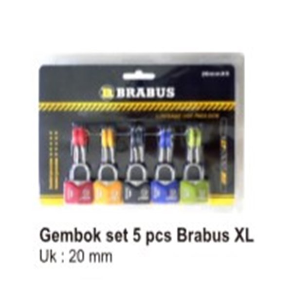 Kami menyediakan aneka kunci pengaman dengan berbagai model, tipe dan ukuran dari berbagai merk, tertera pada foto adalah gembok set 5 pcs merk brabus